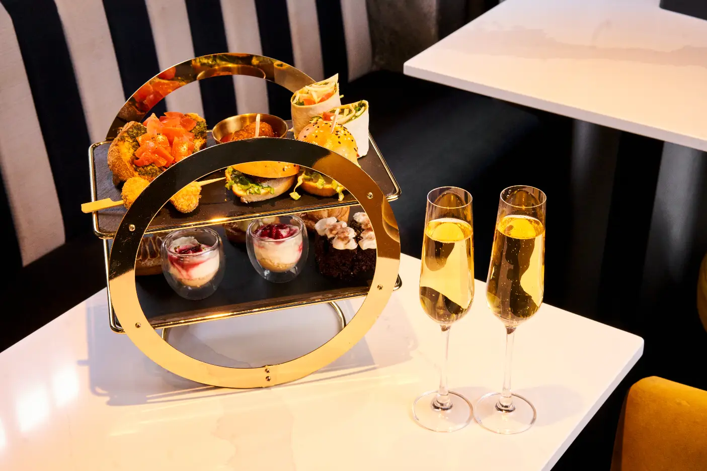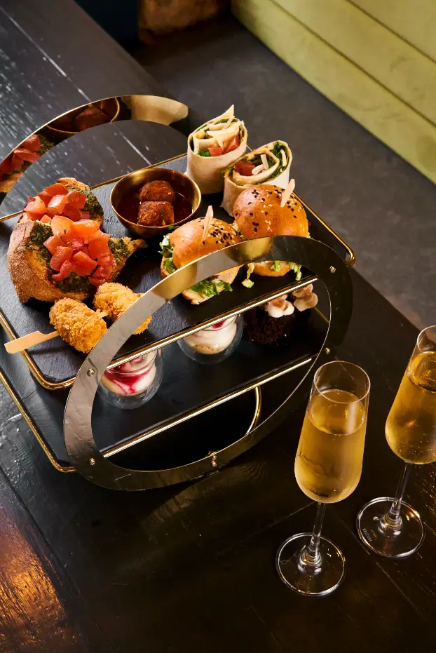 Boozy afternoon tea for two with options to add Prosecco, G&T or a Clover Club cocktail. Indulge in an afternoon of sweet & savoury treats under the neon lights of MOSKITO