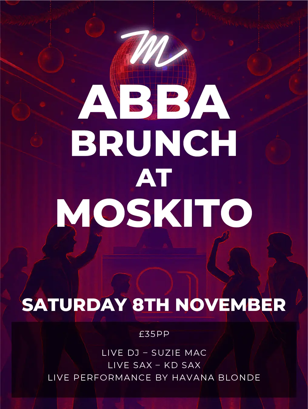 Get ready to sparkle and dance at MOSKITO. Expect disco balls, sparkling vibes and incredible brunch energy as we transport you into the world of disco and glitter. Come dressed in your most fabulous sequins!