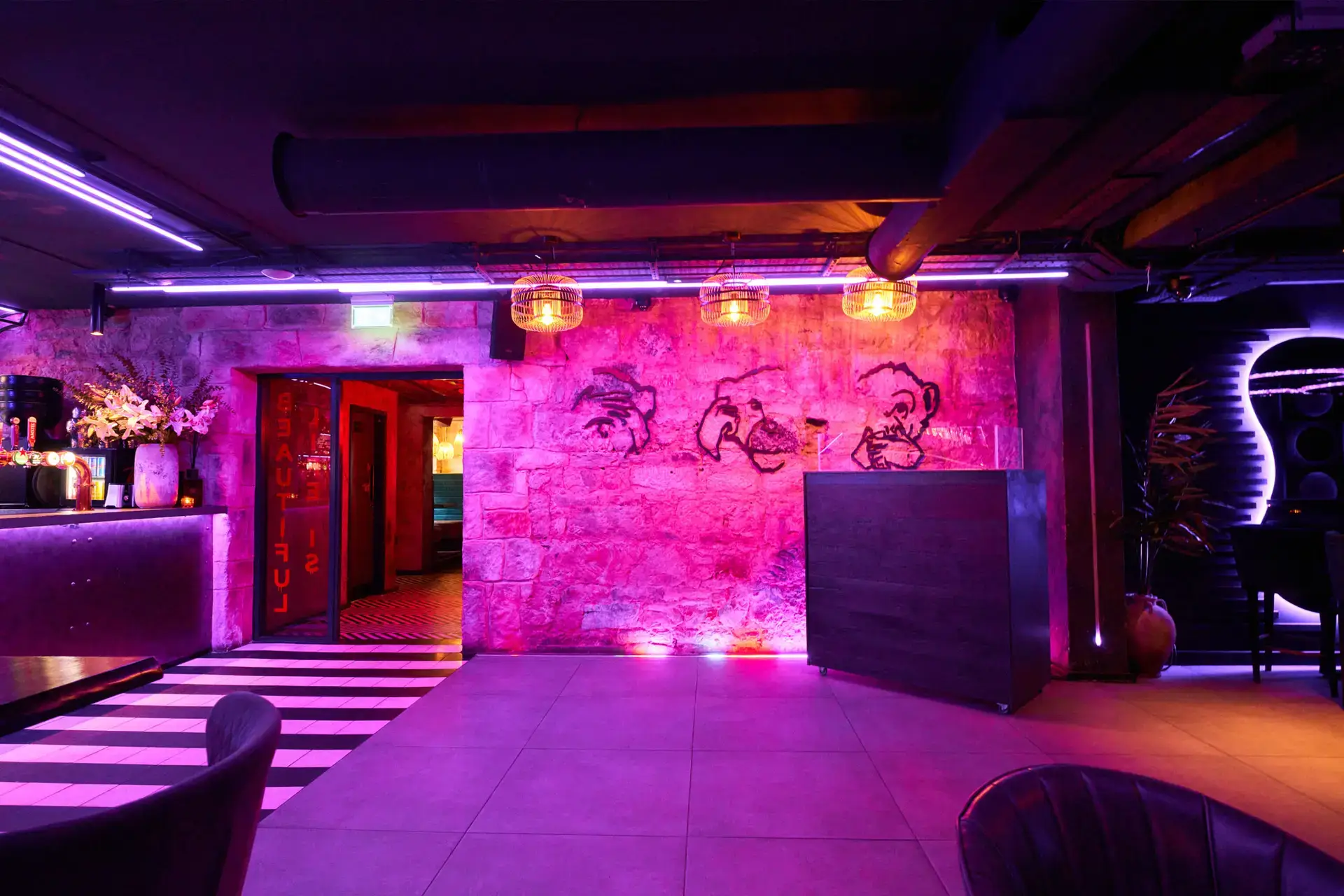 The Monkey Room benefits from its own private entrance, separate bar and DJ booth for a very exclusive and VIP experience, and is complete with state of the art audio-visual and lighting systems. The Monkey Room can work seamlessly on it’s own or in addition to the main bar.
